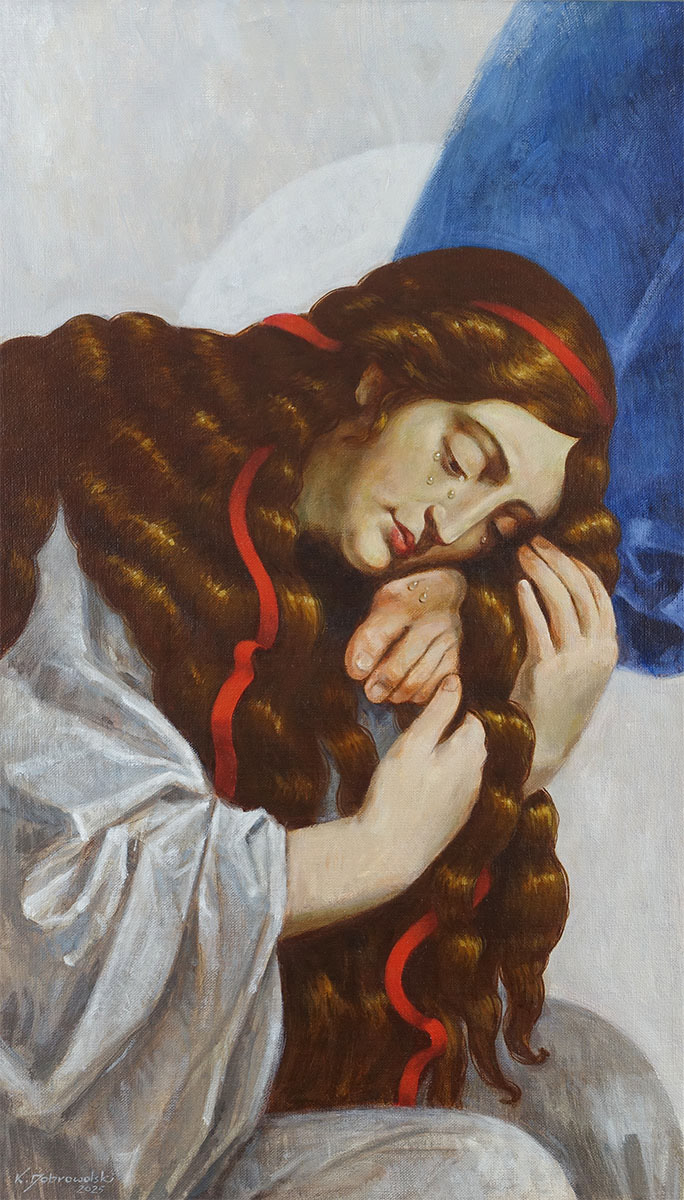 Młoda dama z kwiatkiem. Akryl na płótnie.